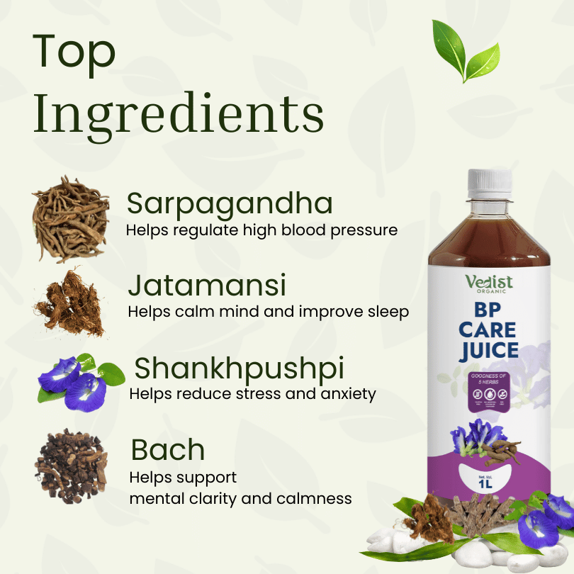 Clinically tested to help regulate blood pressure, improve circulation, and reduce stress using Ayurvedic herbs like Sarpagandha, Bach, Jatamansi, and Shankhpushpi. This holistic formula helps improve circulation, reduce stress, and maintain healthy BP levels - without side effects.